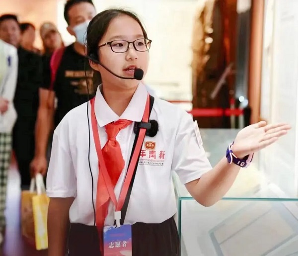 王雨晨是中国共产党早期北京革命活动纪念馆(北大红楼)第一位全程讲解的红领巾志愿讲解员,她深入研究红楼历史,力求讲解准确无误,讲解条理清晰、声情并茂。1300多小时的志愿时长里,蕴藏着这位少年对于革命历史的热情和执着。