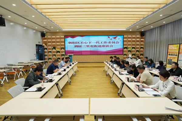为深入学习贯彻纪念中国关心下一代工作委员会成立35周年暨全国关心下一代工作表彰大会和全市关工委工作推进会精神,9月26日,朝阳区关工委一行到三里屯街道调研关心下一代工作,并召开座谈会。区关工委主任辛燕琴,区委组织部副部长、老干部局局长、区关工委常务副主任高敬茹,区退役军人事务局党组书记崔松青,区关工委青少年科技教育专委会主任王玉华,区关工委青少年宣传文化教育专委会主任高春利,区关工委未成年人法治教育专委会主任高大中,区委老干部局副局长、区关工委秘书长蒋立荣,区退役军人事务局副局长张晨霞,三里屯街道工委书记孙曙光,三里屯街道工委副书记白少飞等参加调研。