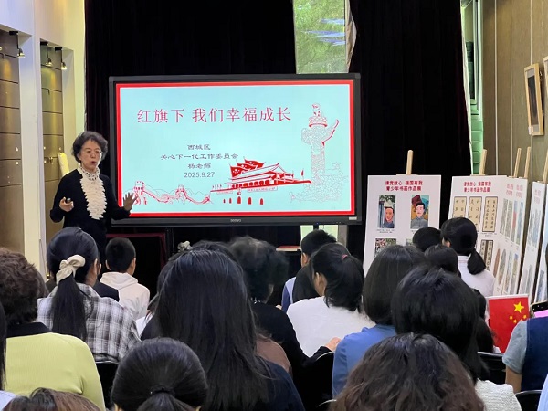 杨秀苓作“红旗下 我们幸福成长”专题讲座,深情讲述刘胡兰、江姐、张思德、狼牙山五壮士等英雄人物故事,引导青少年深刻认识幸福生活的来之不易,呼吁青少年勤奋学习、立志报国,切实践行“请党放心 强国有我”的青春誓言。