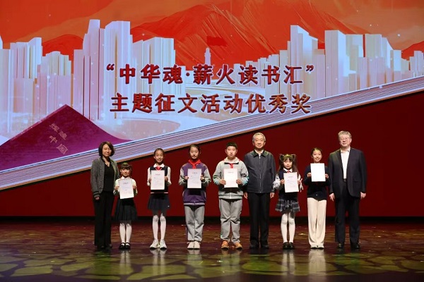 活动最后还举行了颁奖仪式,为在“中华魂 薪火读书汇”(读峥嵘岁月 书辉煌中国)网络主题演讲及征文活动中表现突出的青少年颁发证书。
