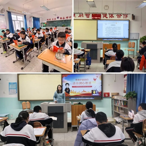 大榆树中学关工委多种形式开展宪法宣传活动。在宪法诵读活动中,让同学们感受宪法的威严与力量。通过主题班会深入探讨“宪法与青少年的关系”,借助案例分析、互动问答等形式,让学生明白宪法不仅是治国安邦的总章程,更是保障自身权益的根本遵循。同时组织学生登录全国青少年普法网,参与在线宪法知识学习、答题竞赛,以数字化方式拓宽学习渠道,激发学习热情。