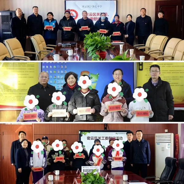 为深入贯彻落实全市困境青少年关爱帮扶工作座谈会精神,1月16日,密云区关工委联合区教委组建两支专项慰问队伍,分赴密云区新城子镇、巨各庄镇、不老屯镇、冯家峪镇等乡镇的6所中小学,开展困境青少年走访慰问,以实际行动为孩子们送去党和政府的关怀与新春祝福,并召开座谈会。区关工委常务副主任郝加瑞,区关工委副主任、区教育系统关工委主任高淑贤,区教委副主任尹玲玲及区关工指导中心、区教委相关负责人参加慰问。