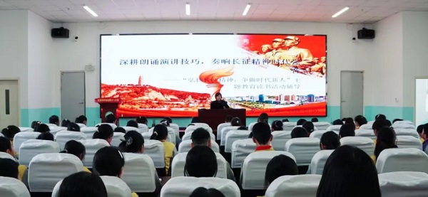 王英以“深耕演讲朗诵技巧,奏响长征精神时代强音”为主题,为马坊实验中学、平谷区第十一小学学生作专题讲座。她深入阐释长征精神中坚定信念、艰苦奋斗的核心要义,激励同学们将精神力量转化为勤学进取、勇担使命的实际行动,并对同学们进行朗诵指导,让同学们在实操练习中深化对长征精神的理解。