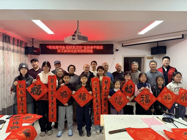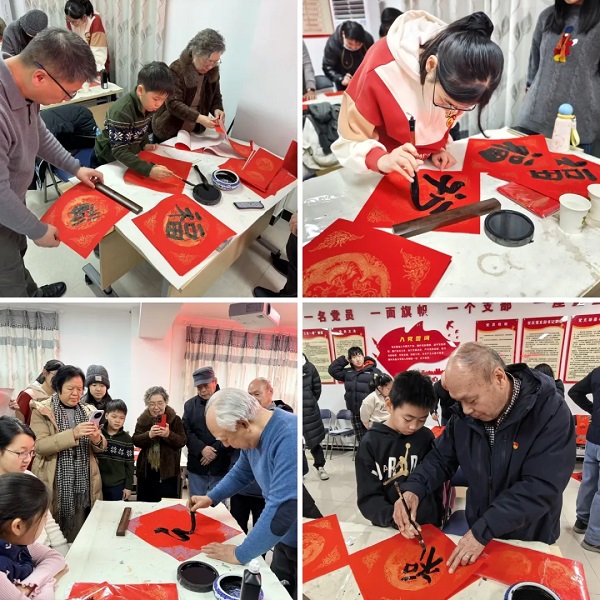 活动中,老少携手合作,共同完成春联五十余幅、“福”字近百张,赢得社区与居民们的广泛好评。