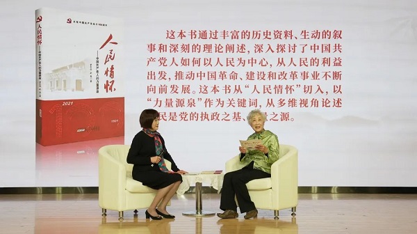 中央广播电视总台退休干部肖玉、卫东、戴萱、陆洋深情朗诵习近平总书记重要文章《必须坚持人民至上》节选,感受习近平总书记深厚的人民情怀,感悟“人民至上”的深刻内涵。活动最后,与会领导向老同志代表赠送书籍。