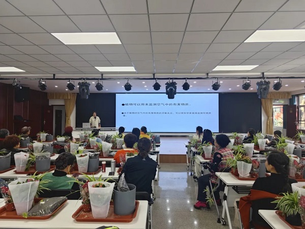 服务团成员郭翎以《植物大千世界》为题,带领大家“穿梭”五大洲经典花境,解密帝王花、空气凤梨、苦苣苔等“网红”植物背后的文化密码,为老同志送上阳台配景“灵感包”。