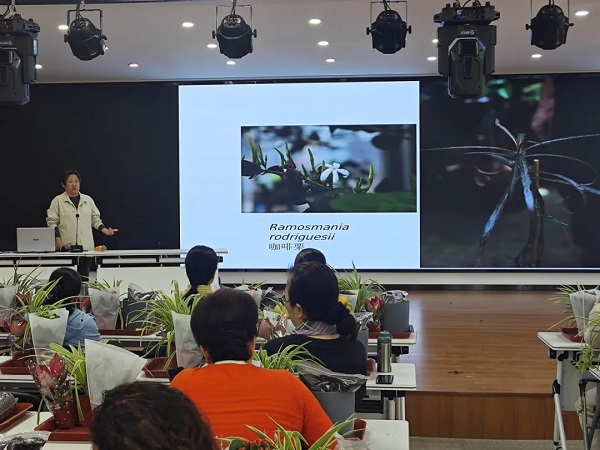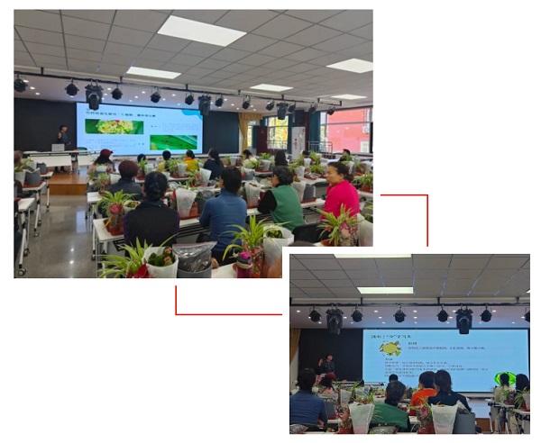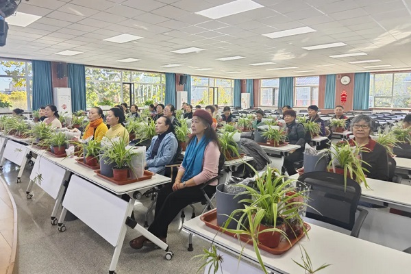 “红掌叶尖发黑怎么办?”“长寿花只长叶不开花缺什么肥?”……面对学员连珠炮式提问,两位专家现场“把脉开方”,课堂氛围热烈非常,掌声、笑声与淡淡花香交织成一幅温馨画卷。