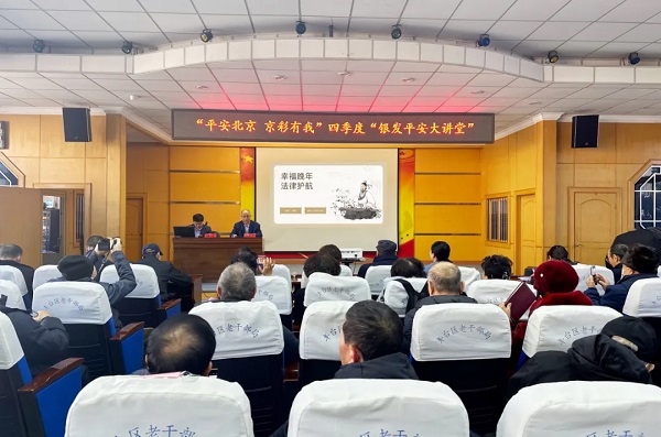 在2025年全国宪法宣传周期间,12月2日上午,“平安北京 京彩有我”四季度活动“银发平安大讲堂”在丰台区委老干部局举办。市老党员先锋队总队委员会常务副主任委员刘向东,丰台区委组织部副部长、老干部局局长刘淑钰出席活动。活动由市老党员先锋队总队委员会委员、平安北京建设服务团团长孙建军主持。