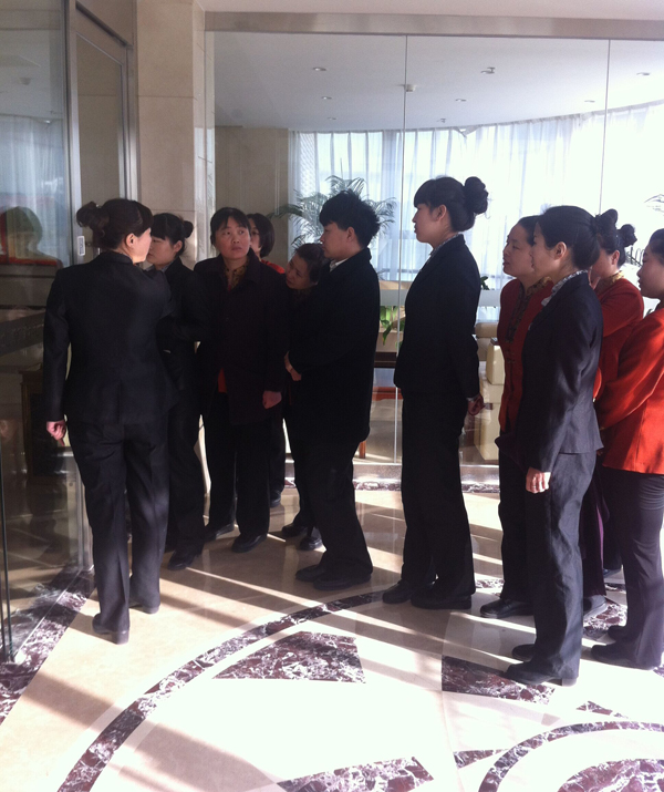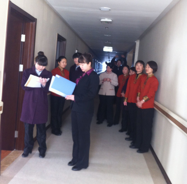 客务部检查工作,全休人员参加,目地在于统一思想、量化标准、资源共享,切实有效的让员工了解工作标准和管理人员的工作理念,达到共实。随后对检查结果签字确认,减少员工出现类似问题,提高工作效率和工作质量。