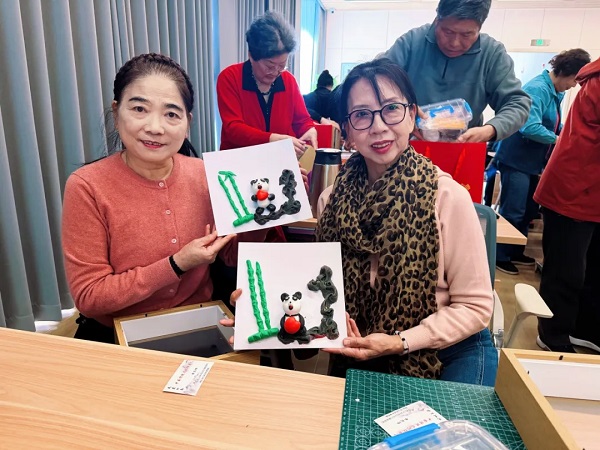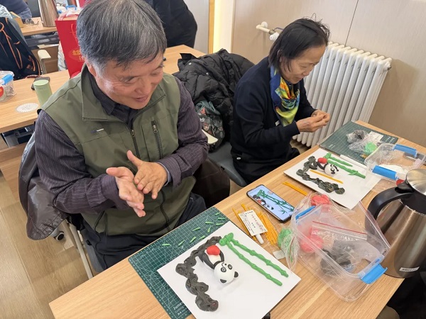 体验环节中,在李老师的教授下,老同志们了解并练习了“揉、搓、压、捏、剪、粘”等核心手法,从面团的软硬调控到色彩的比例搭配,再到塑形要点,一个个形态各异、憨态可掬的熊猫面塑作品次第呈现。老同志们纷纷表示,这次活动让大家在指尖的创作中感悟匠心,在交流互动中传递热爱,感受到古老的面塑技艺背后的文化内涵。