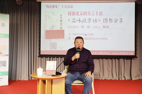 刘一达作为京味文化的传承者,他深耕北京话研究四十余年,其新作《品味北京话》不仅有对北京话的细腻描绘,更有对京味儿精神内核的深度挖掘。在活动现场,刘一达从北京话的起源讲起,他告诉大家:北京话是元明清三代文化交融的结晶,既有胡同俚语的通俗鲜活,也有官话的典雅规范。他从“您”“怹”等敬语的形成讲到“局气”“厚道”,用“豆汁儿”“道乏”等鲜活案例解析语言背后的市井智慧与宫廷遗韵。“北京话不是简单的方言,而是刻在城市基因里的文化密码。”刘一达深入浅出的讲解,引得在场老同志频频点头。
