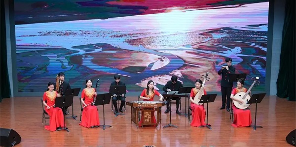 活动现场,为大学生代表赠送书籍,鼓励青年一代多读书、读好书,立大志、成大才,努力成长为堪当民族复兴重任的时代新人;上演民乐合奏《万疆》、歌舞《我的祖国》等文艺节目,表达对党的无限热爱、对新中国成立75周年的美好祝福。