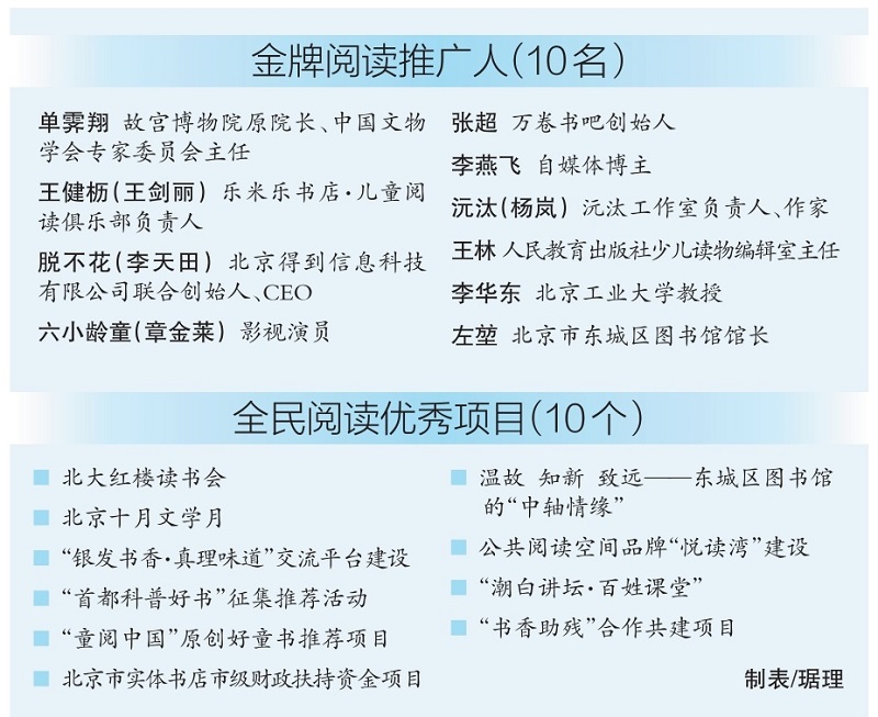 第十四届书香中国·北京阅读季阅读盛典12月5日在老舍剧场举行,展示书香京城建设一年来的成果。活动现场,北京市青少年阅读促进联盟成立,金牌阅读推广人等七类评选结果发布,单霁翔、六小龄童等获评金牌阅读推广人。