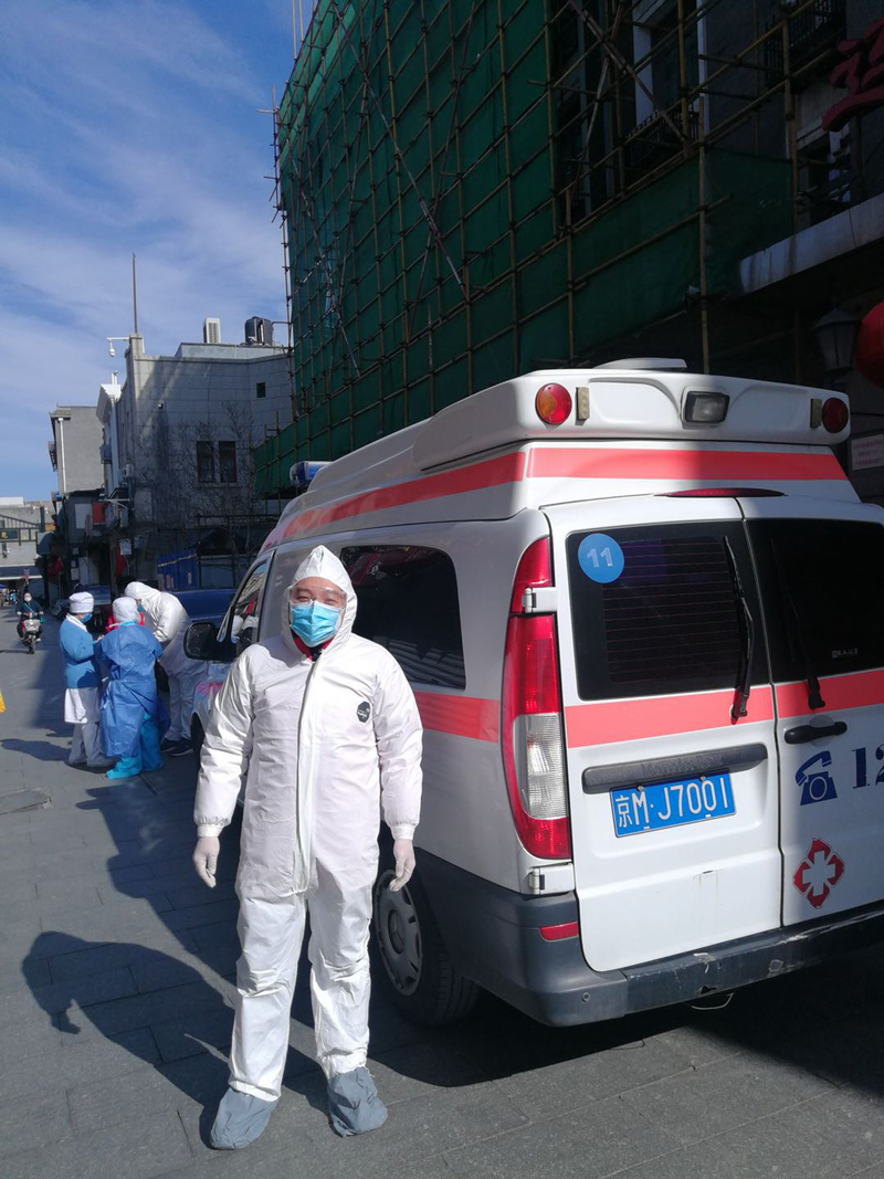 西城区委老干部局干部张恽准备护送大栅栏街道发热人员去医院筛查