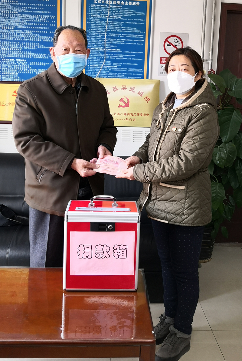 石景山区离休干部党员田宗豪拿着1万元来到社区,要求作为特殊党费上交组织