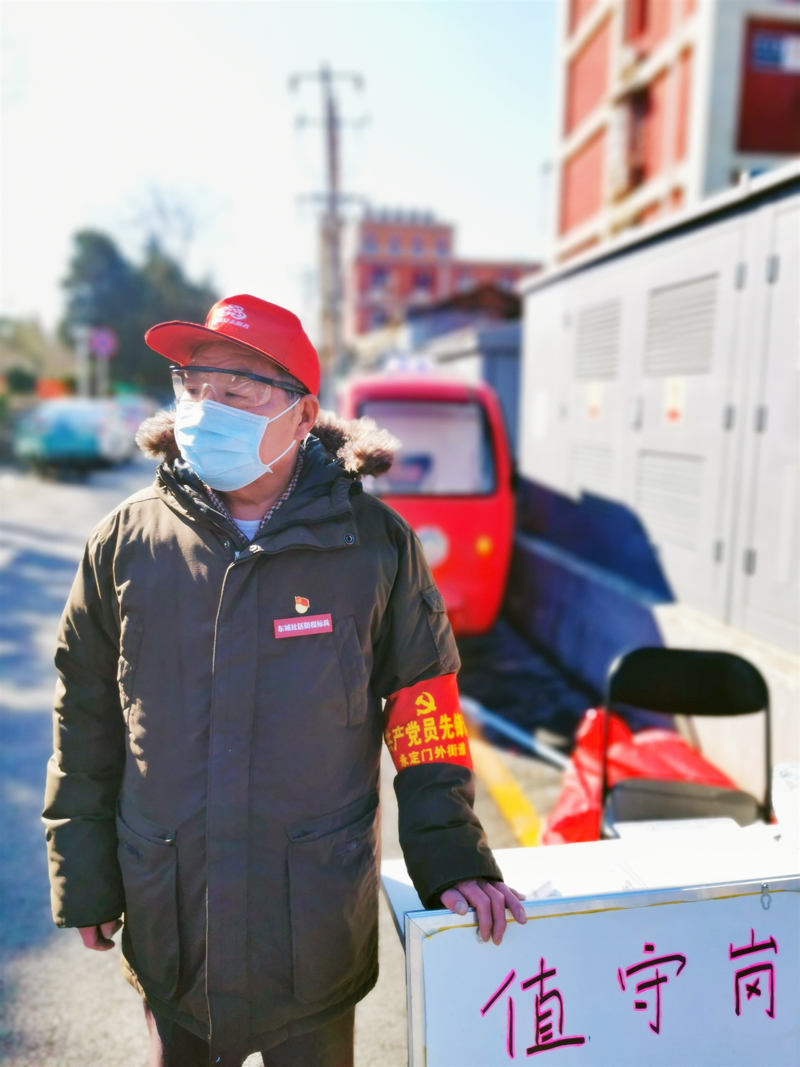 东城区永外街道松林里社区老党员李学东投身志愿服务,坚持参加值守