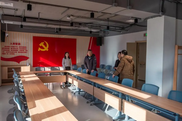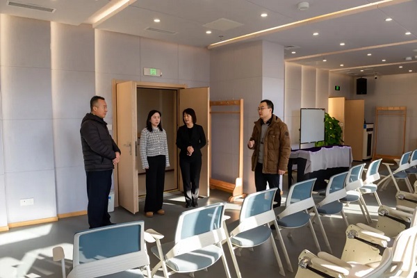 调研中,活动中心相关同志向调研组详细介绍了小关分中心启用后的运行情况,深入阐述“多点布局、优化服务”的建设理念,系统分享在运行管理精细化、服务模式创新化及资源对接高效化等方面的实践举措,涵盖多功能场所规划、精神谱系展览、党建活动厅室、教学培训厅室、文体活动品牌以及医疗配套、餐饮保障等情况,并带领调研组一行参观了各楼层厅室,直观感受小关分中心的建设成效与服务能力。