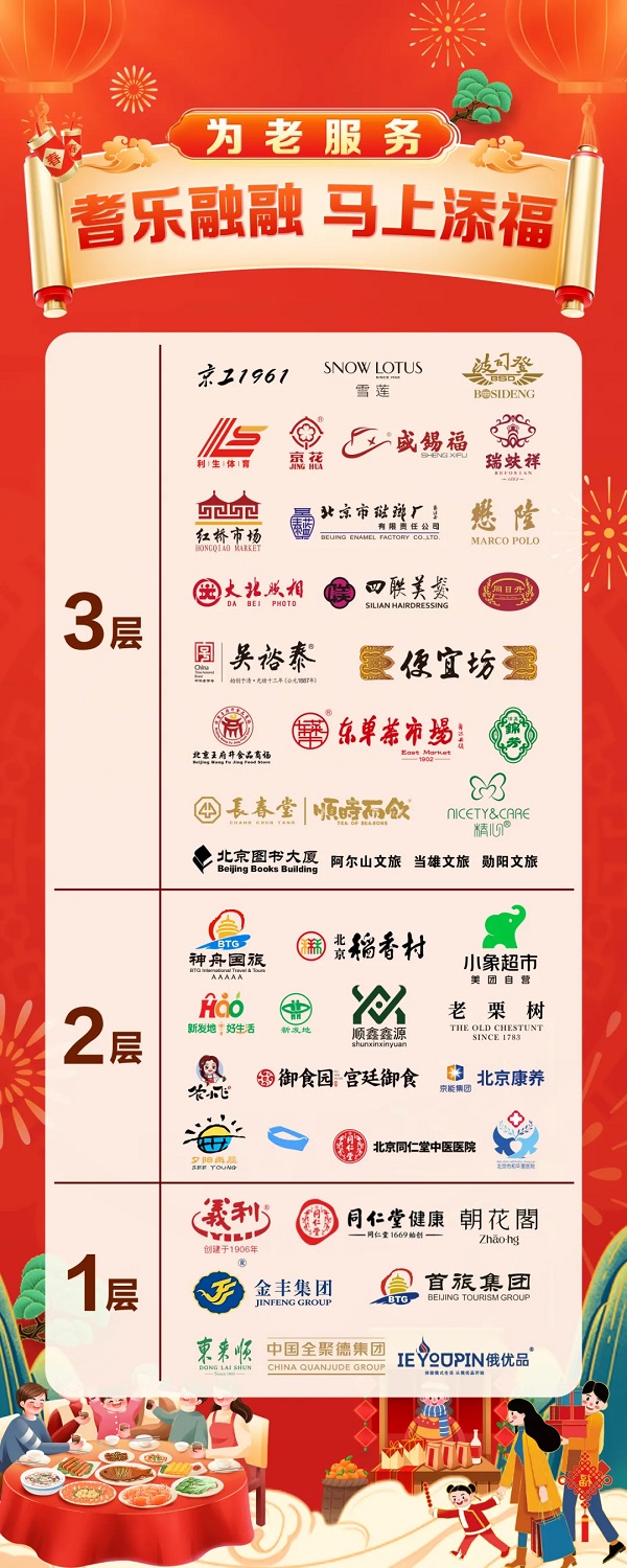 活动现场好物云集,亮点纷呈。朝花阁“五花马”迎春绽放、图书大厦春联喜庆红火、大北照相全家福温馨祥和、瑞蚨祥香云纱典雅大气,浓浓的“年味儿”扑面而来;同仁堂、东来顺、全聚德、稻香村、百年义利等“老朋友”悉数到场,同日升、盛锡福、吴裕泰、便宜坊、王府井等“新伙伴”纷至沓来,传统的“京味儿”愈来愈浓;东单菜市场的烟酒零食、新发地的瓜果蔬菜、御食园的传统糕点、小象超市的干果礼盒、红桥市场的珍珠饰品、京工集团的服饰衣帽、四联美发的特色服务,老北京的“烟火气”蒸蒸日上;APP的扫码纳福智连心意、小蓝船的智能设备乐享生活、神舟国旅的精选线路看点十足、康养集团的旅居服务暖心周到,适老化的“科技感”独具匠心。
