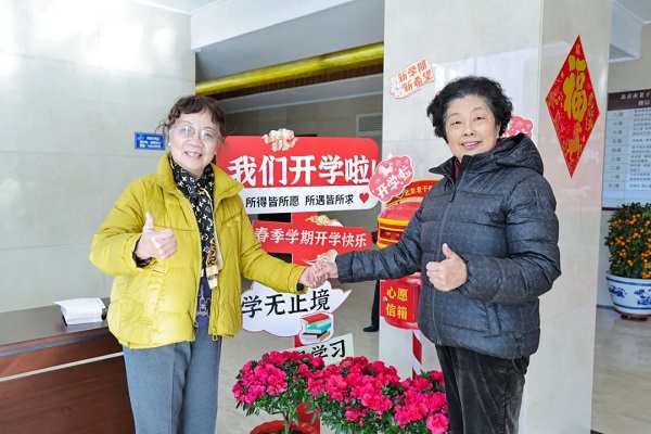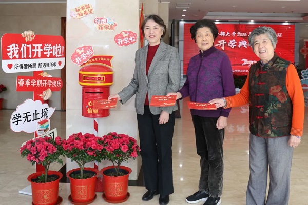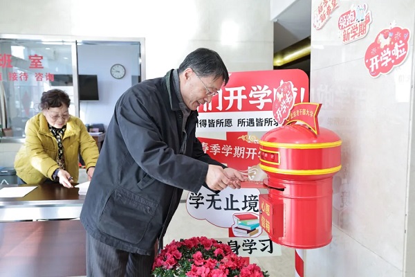 开学典礼当日,大学精心打造“心愿信箱”温情互动环节,设置主题打卡背景墙与特色标语手持卡,营造温馨热烈的开学氛围。现场吸引老同志们纷纷驻足拍照、定格幸福瞬间,在满满的仪式感中开启新学期学习生活,切实提升老同志的归属感与幸福感。