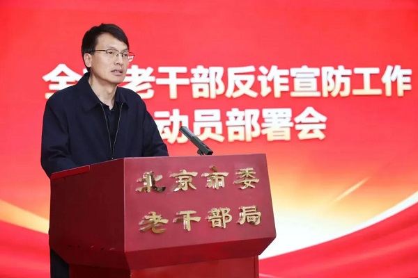 4月17日上午,全市老干部反诈宣防工作动员部署会在市委老干部局召开。市委组织部副部长、市委老干部局局长张彤军,市打击治理电信网络诈骗工作协调机制副组长、市公安局党委委员、副局长孙海涛出席会议并讲话。市委政法委政治部主任赵跃、北京市老党员先锋队总队委员会常务副主任委员孙美玲出席会议。