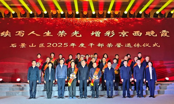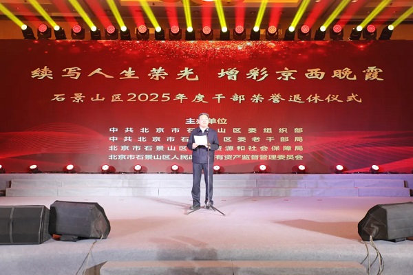近日,石景山区举办2025年度干部荣誉退休仪式。石景山区委书记常卫,区委副书记、区长万隆,区人大常委会主任田利跃,区政协主席金秀斌,市委老干部局副局长栗晋春,区委副书记张利军,区委常委、政法委书记、区委办公室主任迟志禹,区委常委、组织部部长王昕出席仪式。
