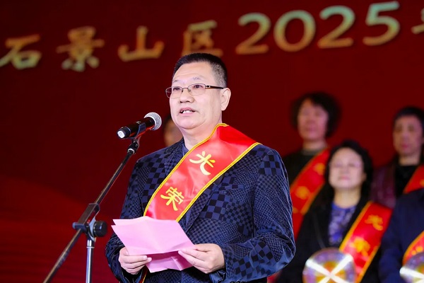 区文化和旅游局原副局长王振彪代表2025年度新退休干部发言。他表示,光荣退休不是终点,而是另一种形式的出发,新退休干部将在“京西晚霞”的广阔舞台上老有所为、发光发热,继续为石景山区的繁荣发展贡献力量。